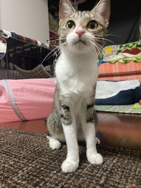 | 特徴(性格など) | ◆点天ちゃん 遊ぶのもなでなでも大好きなキジ白の女の子 ○静岡県内にて保護されました。 ○推定1歳くらい(2022年4月上旬時点)のキジ白の女の子です。体重は2.94㎏(2022年4月2日時点)です。 ○まだ若いのでおもちゃでよく遊びます。1人でも遊んでいます。 ○なでなで大好きです。 ○爪切りも投薬も抱っこしてできます。 ○先住猫ちゃん大丈夫です。 ○長時間でなければお留守番もできます。 ★不妊手術済み。 ★猫エイズ、猫白血病ともに陰性。 ★ワクチンは体調をみて近日中に接種予定です。 ☆単身のかたはご相談ください。 ○YouTubeにも動画をあげています。こちらもご覧下さい。 「点天」その1 https://youtu.be/AMuRWUCT5vc 「点天」その2 https://youtu.be/KpqxafAlSy0 ○4/10(日)開催の譲渡会に参加予定! 下の要項をお読みいただき、ぜひ会いに来てください♪ ☆★☆★☆★☆★☆★☆★☆★☆★☆★☆★☆ ~4月10日(日)新山下にて譲渡会開催!~ ◎場所・・「島忠ホームズ 新山下店」 神奈川県横浜市中区新山下2丁目12−34 JR根岸線「桜木町駅」より横浜市営バス(8.26.58.148系統)乗車「貯木場前」より徒歩約5分 みなとみらい線「元町・中華街駅」より徒歩約15分 ◎日程・・4月10日(日)(雨天決行) ◎時間・・12時から15時 【14時30分受付終了】 (会場に利用可能な無料駐車場がございます。そちらをご利用くださいませ。) 今回はコロナ対策のため、制限を設けての開催となります。 *3密対策のため、当日10時より全時間分の整理券を配布いたします。整理券枚数には限りがございますので、上限に達した場合はご入場できません。 *各回15分 *各回先着3組様 *参加の際は、マスクの着用、アルコール消毒のご協力をお願いいたします。 *当日は検温の上、体温が37度以上の方はご参加いただけません。 *混雑状況により、中止させていただく場合がございます。 ※参加予定の猫は体調により参加できない場合があります。ご了承ください。 ☆★☆★☆★☆★☆★☆★☆★☆★☆★☆★☆ |
