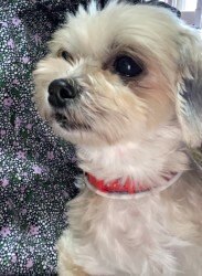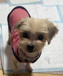 | 特徴(性格など) | ■特徴 (仮名:チャコ) シーズーマルチmix♀ 推定6~7歳 体重4.0キロ ■性格・暮らし ・人が大好き、とても甘えん坊です。 ・初めて会う犬には吠えてしまいますが、慣れれば犬、猫とも問題なく過ごせます。 ・お散歩大好き、元気に楽しそうに歩きます。 ・室内トイレはほぼトイレシートで出来ます。 ・ケージが苦手で吠えてしまうのでフリーで過ごしています。 ・お留守番は苦手なので練習中です。 ■今までに行った医療行為 ・フィラリア検査(-)(3/4) ・健康チェック(3/10) ・6種混合ワクチン(3/10) ・検便(-)(3/24) ・避妊手術(3/24) ・血液検査(3/24) ・マイクロチップ装着(3/24) ・歯科処置(3/24) ■今後行う予定の医療行為 ・狂犬病予防接種 |