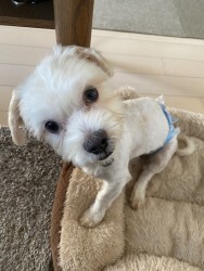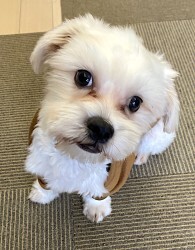 | 特徴(性格など) | ■特徴 仮の名前:ペス 多頭飼育家庭から放棄のシーズーマルチMIX♂ 推定7ヶ月 体重3.7kg ■性格・暮らし ・人が大好きで、いつもしっぽブンブンです。 ・お散歩で会う人やわんこは少し苦手です。 ・お散歩は上手に歩けます。 ・トイレは練習中です。 ・対犬は家の中ではそつなくすごせます。 ・ケージが苦手で、吠えなどがあります。 ・身体能力が高く、ある程度の高さは飛び乗れてしまうので注意が必要です。 ■今までに行った医療行為 ・健康チェック(3/5) ・7種混合ワクチン(3/5) ・マイクロチップ挿入(4/5) ・去勢手術(4/5) ・血液検査(4/5) ・フィラリア抗原検査(陰性)(4/5) ・狂犬病予防接種(4/5) ■今後、行う予定の医療行為 ・特になし |
