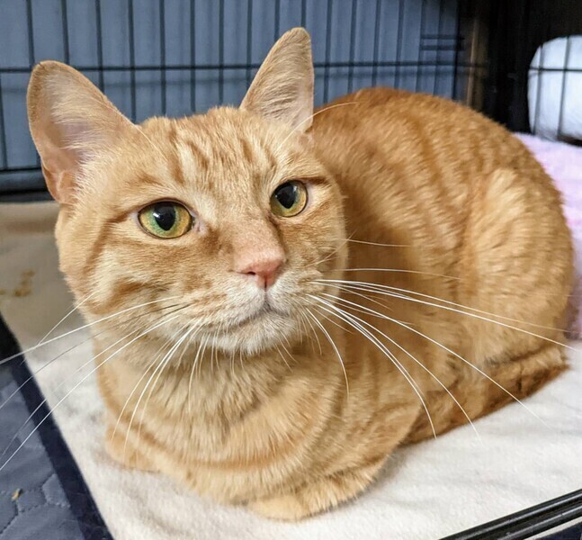 | 特徴(性格など) | ◆茶太郎くん 人が好きで寄ってくる茶トラの男の子 ○静岡県浜松市内で保護されました。 ○推定1歳半くらい(2022年3月末時点)の茶トラの男の子です。体重は4.4㎏(2022年4月2日時点)です。 ○チャームポイントはザ・茶トラという感じのキレイなトラ模様と、若猫らしいスリムで筋肉質な体型です。 ○お顔も茶トラらしい丸顔です。 ○尻尾は長く真っ直ぐですが、触ると先の方がわずかに曲がっています。 ○少しびびりなところがあって、物音がすると隅っこに隠れます。 ○人が好きでスリスリと寄ってきて、「撫でて」と鳴きながら催促します。 ○お腹も見せてくれます。 ○抱っこはできますが、じっとしているのが嫌なようですぐ降ります。 ○他の猫とも適度な距離で付き合えるようです。 ★ワクチン1回済み、不妊手術済み。 ★猫エイズ、猫白血病ともに陰性。 ☆単身のかたはご相談ください。 ○YouTubeにも動画をあげています。こちらもご覧下さい。 「茶太郎」その1 https://youtu.be/-kxBXAlnxRA 「茶太郎」その2 https://youtu.be/x2MoyLf9Vdg ○4/17 (日)開催の譲渡会に参加予定! 下の要項をお読みいただき、ぜひ会いに来てください♪ ☆★☆★☆★☆★☆★☆★☆★☆★☆★☆★☆ ~4月17日(日)市ヶ尾にて譲渡会開催!~ ◎場所・・「東急ドエル市ヶ尾プラーザビル2階集会場」 神奈川県横浜市青葉区市ヶ尾町1154-2 田園都市線「市ヶ尾」駅西口より徒歩約2分 ◎日程・・4月17日(日)(雨天決行) ◎時間・・13時から16時(受付は15時30分まで) (会場に利用可能な駐車場はございません。近隣のコインパーキングをご利用ください。) *3密対策のため、当日12時30分より全時間分の整理券を配布いたします。整理券枚数には限りがございますので、上限に達した場合はご入場できません。 *参加の際は、マスクの着用、アルコール消毒のご協力をお願いいたします。 *当日は検温の上、体温が37度以上の方はご参加いただけません。 *混雑状況により、中止させていただく場合がございます。 ※参加予定の犬猫は体調により参加できない場合があります。ご了承ください。 ☆★☆★☆★☆★☆★☆★☆★☆★☆★☆★☆ |