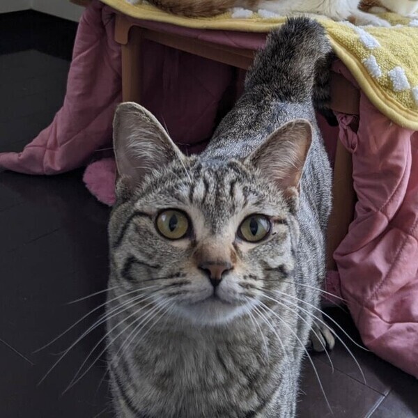 | 特徴(性格など) | ◆ちびまるくん 活発で物怖じしないキジトラ男子 ○静岡県浜松市内で保護されました。 ○推定1歳半くらい(2022年4月時点)のキジトラの男の子です。 ○体重は4.26㎏(2022年4月2日時点)で、ちょっとぽっちゃりしています。 ○尻尾は長くて真っ直ぐです。 ○たまにジャンプして背中や肩にし乗ってきます。 ○運動大好で活発、全く物怖じしない性格です。 ○ナデナデ大好きで、すぐへそ天になります。 ○他の猫とも仲良くなれます。 ○長時間じっとはしていませんが、抱っこできます。 ★ワクチン1回済み、不妊手術済み。 ★猫エイズ、猫白血病ともに陰性。 ☆単身のかたはご相談ください。 ○YouTubeにも動画をあげています。こちらもご覧下さい。 「ちびまる」https://youtube.com/shorts/T12phCwc3hE ○4/10(日)開催の譲渡会に参加予定! 下の要項をお読みいただき、ぜひ会いに来てください♪ ☆★☆★☆★☆★☆★☆★☆★☆★☆★☆★☆ ~4月10日(日)新山下にて譲渡会開催!~ ◎場所・・「島忠ホームズ 新山下店」 神奈川県横浜市中区新山下2丁目12−34 JR根岸線「桜木町駅」より横浜市営バス(8.26.58.148系統)乗車「貯木場前」より徒歩約5分 みなとみらい線「元町・中華街駅」より徒歩約15分 ◎日程・・4月10日(日)(雨天決行) ◎時間・・12時から15時 【14時30分受付終了】 (会場に利用可能な無料駐車場がございます。そちらをご利用くださいませ。) 今回はコロナ対策のため、制限を設けての開催となります。 *3密対策のため、当日10時より全時間分の整理券を配布いたします。整理券枚数には限りがございますので、上限に達した場合はご入場できません。 *各回15分 *各回先着3組様 *参加の際は、マスクの着用、アルコール消毒のご協力をお願いいたします。 *当日は検温の上、体温が37度以上の方はご参加いただけません。 *混雑状況により、中止させていただく場合がございます。 ※参加予定の猫は体調により参加できない場合があります。ご了承ください。 ☆★☆★☆★☆★☆★☆★☆★☆★☆★☆★☆ |