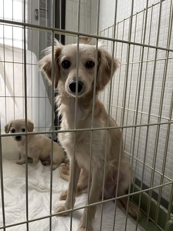 | 特徴(性格など) | ゴールデンレトリバーの小型犬バージョンのようなMIX犬です すごく可愛いです⭐︎ 子育て中で、やっと離乳したので 近々ワクチンと避妊手術します ダックスとプードルのMIXです |