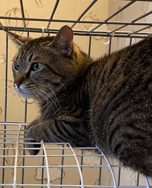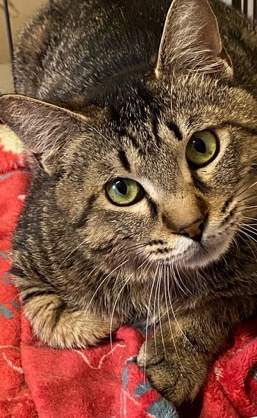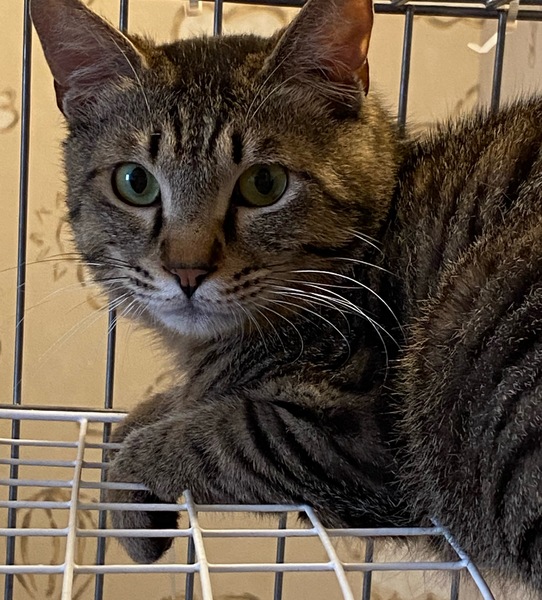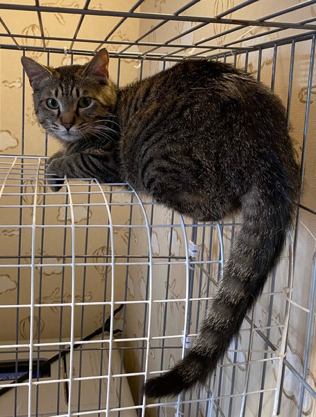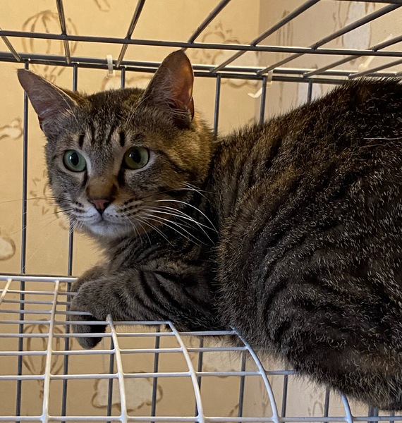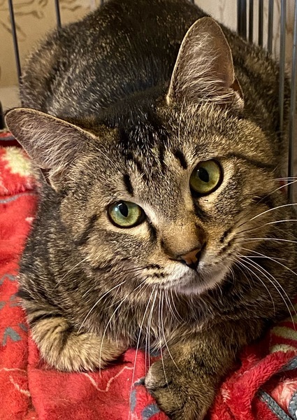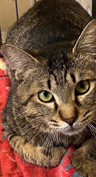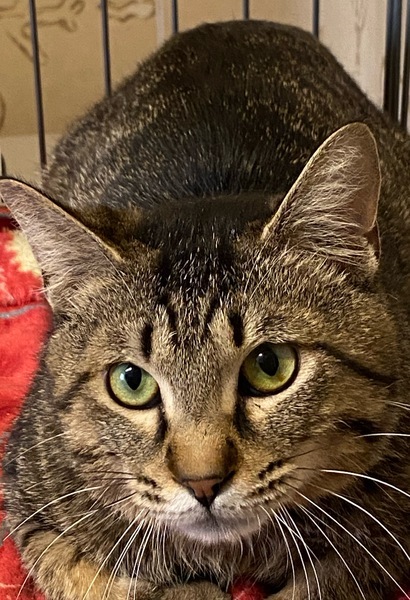 | 特徴(性格など) | 目がくりんとしたキジトラの男の子です。 まだ緊張感が残っているので、毎日の変化がありますが、少しずつ慣れてきています。 猫じゃらしには興味を持っているようです。瞬きをしてこちらをみたり、少しずつ寄り添ってきてくれている様子が伺えます。 |