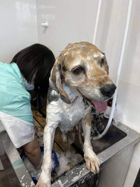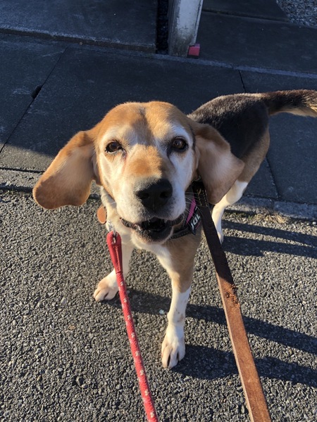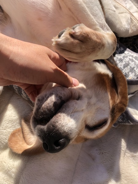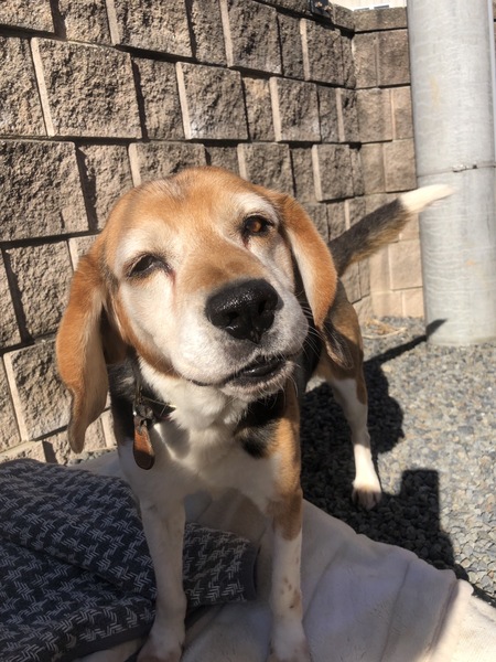 | 特徴(性格など) | 処分予定の犬に与えられた愛護センターのケージは狭く、 引き出しにもたついたこともあり、長く押し込められる生活が続いてしまいました。 ストレスも溜まったでしょう。 ビーグル特有の吠え声で狂ったように吠えておりました。 ですので正直、ある程度覚悟を決めての引き取りでした。 我が家へ向かう車内のバリケンでも狂ったように吠え続け、 どうなるかと青ざめておりましたが、 我が家に到着し、軽く散歩をし、他の犬達の居ない落ち着いたお部屋の広めのケージに入れた途端 今までの大騒ぎが嘘のように静かになりました。 え・・・あの大騒ぎはどこへ・・・?! 面食らう預かりボランティアの戸惑いはよそに今ではどの犬たちよりも静かに過ごしております。 ただしかしそこはビーグル、 お散歩が好きすぎて、お散歩出始めも絶好調で「ウォーウォー」と鳴きます。 お散歩お途中で人や自転車と近距離ですれ違うときも嬉しくなって「ウォーウォー」と鳴きます。 徐々にお散歩に集中し始めると鳴くのを忘れるぐらいの集中力で全力でお散歩を楽しみます。 常に何かを探し回るような特有の歩き。当然散歩中に尻尾はフリっぱなしです。 強すぎる引っ張りもなく、フラフラといろいろなものに興味を持って歩きまわりますがコントロールは楽な子です。 トイレは基本的に外派。 ギリギリまで我慢します。 ただ、どうしても我慢できない時は、外では足上げおしっこ派なのにペットシート部分にしゃがみション。 おしっこしちゃいましたよ~と鳴いて律儀に教えてくれます。 ご飯も・お散歩も・おトイレも済ませ満ち足りると お気に入りのケージの毛布の上で大の字になって転がってグーグー寝ております。 お留守番も非常に上手にできるのはとってもありがたいです。 なでくり回されるのが大好きで 「お、撫でますか?」と気配を察するとゴロンとお腹を見せてワシャワシャ撫でられご満悦。 甘え上手で、おやつ大好き、ご飯も大好き! まさに典型的なビーグルさん。 ただ、嫌いなことは断固嫌いなのもビーグルさん。 お風呂と病院は当然嫌いです。 ですのでシャンプーはトリミングサロンさんにお願いしてしまっております。 トリマーさん曰く、「まあビーグルなので想定内のジタバタですよ~」とのこと。 病院ではスタッフの方に愛想を振りまきまくり、自ら診察台にはよじ登りますが、処置されるとわかると大暴れするので テキパキとエリザベスカラーを装着されテキパキと保定され手早く処置されておりました。 そして眠りが深いからか、寝ているところを急に触ったり、寝ているところに不意に手を出すと驚いて口がでてしまうのと 興奮しすぎると強めの甘噛で口を当てて来るため そこだけ配慮して接して頂きたいです。 苦手な事に対して上手に対処さえすれば 甘え上手で留守番上手な「大人ビーグル」さんなのです。 どうかビーグル好きの方のおうちで第二の人生を過ごしてほしいと思います。 --- 体重:16kg 去勢手術済み 内外駆虫済み 混合ワクチン接種済み フィラリア(陰性) 検便(-) 血液検査 マイクロチップ済 |