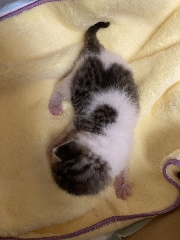 | 特徴(性格など) | 生後10日ほどの子猫です。兄弟もいましたが発見時には亡くなっていたそうで、生き残った力強い子です。 まだミルクを飲んでいてヨチヨチ歩きの可愛い子です。 生後2か月ほどでワクチン接種の予定ですので、その後の譲渡で考えています。 ネットが苦手な保護主に代わり代理で募集しております。 お問い合わせは下記の連絡先に「キジ白の赤ちゃん猫の件」とお問合せ下さいませ。 |