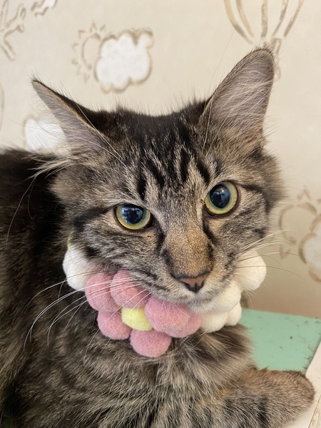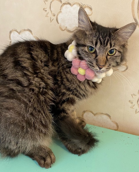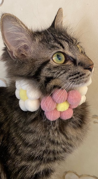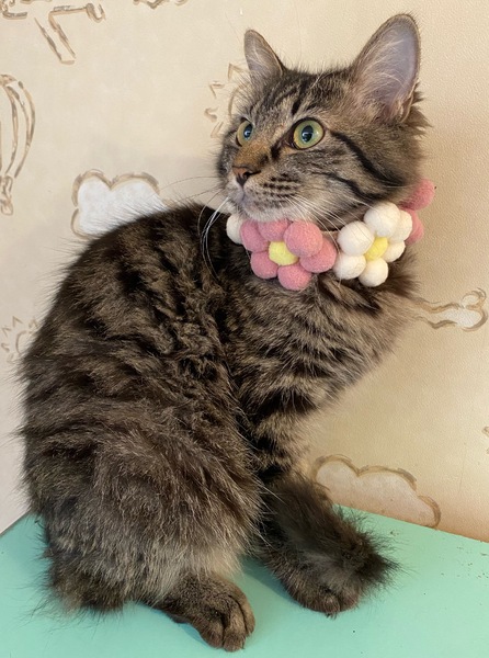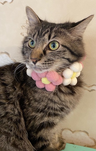 | 特徴(性格など) | 穏やかなやや長毛の女の子です。 他の猫とも仲良くでき、人にも慣れています。 おとなしいけれど、遊ぶのも大好き、猫じゃらしも大好きな子です。 一緒にいた子と離れた事や、数週間の間に転々とした事から、温かく迎えて頂ける方にお願いしたいと思います。 |