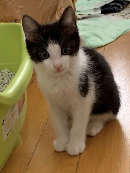 | 特徴(性格など) | 性格や特徴: 猫の仮名:ドットちゃん 毛色・柄:黒白 元気で人懐っこい子です。フワフワしていてぬいぐるみみたいでとても愛らしいです。 ベアくんと姉弟です。仲良し姉弟なので、2匹一緒に引き取っていただけたら、とてもありがたいです。 |