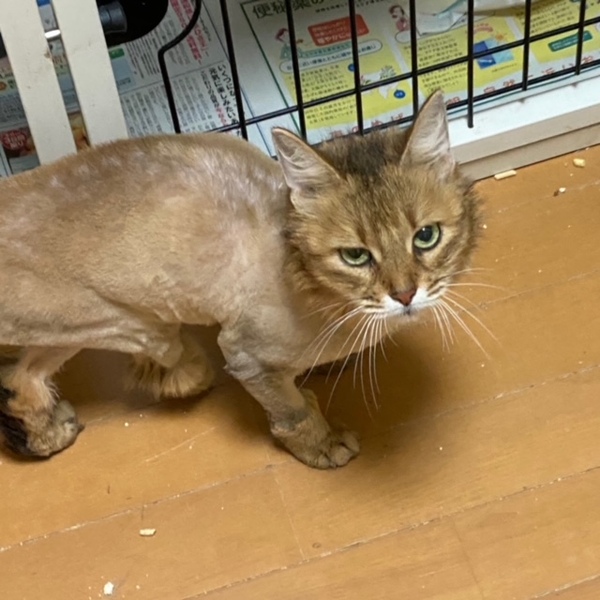| 特徴(性格など) | 名前:ソフィア 女の子 ソマリ 毛色:ルディ(こげ茶) 性格:人にはとっても甘えん坊さんでスリスリゴロゴロしていますが猫は相性があり出来たら1匹だけで飼って頂きたいです。人にはとっても優しい子ですので初心者の方にも十分生活出来る子です。 保護時酷い毛玉だらけでしたので全身バリカンで刈っています、毛が伸びたら長毛の綺麗なソマリさんになります。 健康状態は良好です。 不妊手術 3種混合ワクチン 猫エイズ・白血病検査:陰性 検便:陰性 血液検査:異常なし マイクロチップ装着 右後ろ脚の先が欠損しています。レントゲンも撮りましたが骨折痕ありですが既に固まってしまっており治療は不要だと獣医より言われました。足先の欠損は子猫の時に食べられたのではないかと憶測ではありますが指がありません。足先の欠損による生活支障はございません。2段ケージも上り下りも出来ますし走り回ったりも出来ています。 トイレの躾済 食欲もあり排せつも順調です。 |