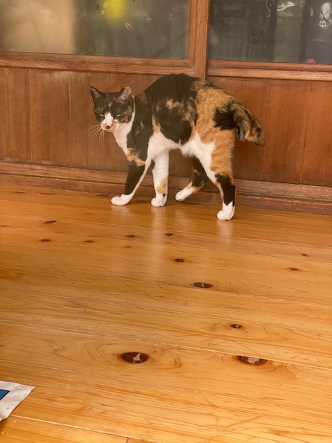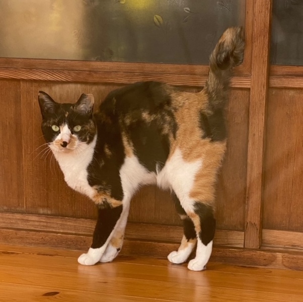 | 特徴(性格など) | 名前:ひめ 黒三毛の泥棒顔です。 保護した当時は興奮していて狂暴な所もありましたがほごしてから1年以上が経ち随分と落ち着いてきました。家猫修行頑張ってくれています。ひめちゃんのペースでゆっくりと時間をかけて慣らして下さる方、ひめちゃんのペースでのんびり生活をさせて頂ける方を希望しています。 とってもマイペースな子ですが抱っこは苦手です。 現在は日中はフリー生活で夜はケージインしています。 顔つきがとっても優しくなり、人がいても微動だにせずだったのが室内を自由に歩いています。本当に頑張ってくれています。 健康状態は良好です。 不妊手術済 3種混合ワクチン済 ウィルス検査:陰性 検便:陰性 蚤ダニ駆虫済 腸内寄生虫駆虫済 風邪もひくこともなく食欲旺盛でとっても元気です。 |
