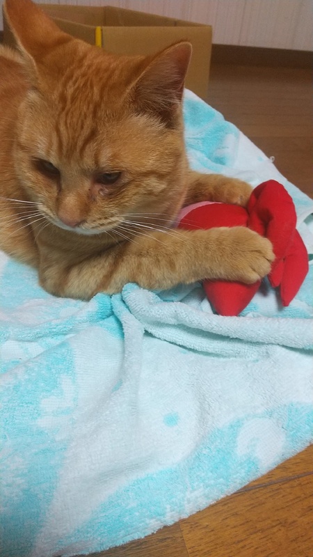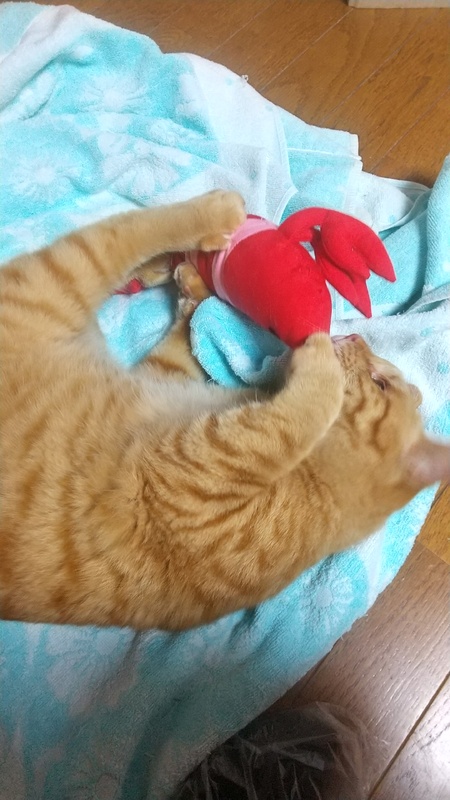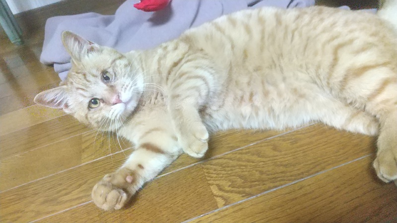 | 特徴(性格など) | 茶トラのオスです。 獣医さんの話では推定一才くらい。 体重は4.7キロくらいです。 ワクチン接種・駆虫済み 猫エイズ・白血病陰性 トイレは最初から完璧にできました。 知らない人・場所でも物おじしない肝の据わった子です。 病院の診察台でもリラックスして看護師さんに甘えます。 遊ぶのが大好きで、よくペットボトルのキャップでサッカーをして走り回っています。 仰向けになってお腹をなでさせてくれるフレンドリーな子です。 |