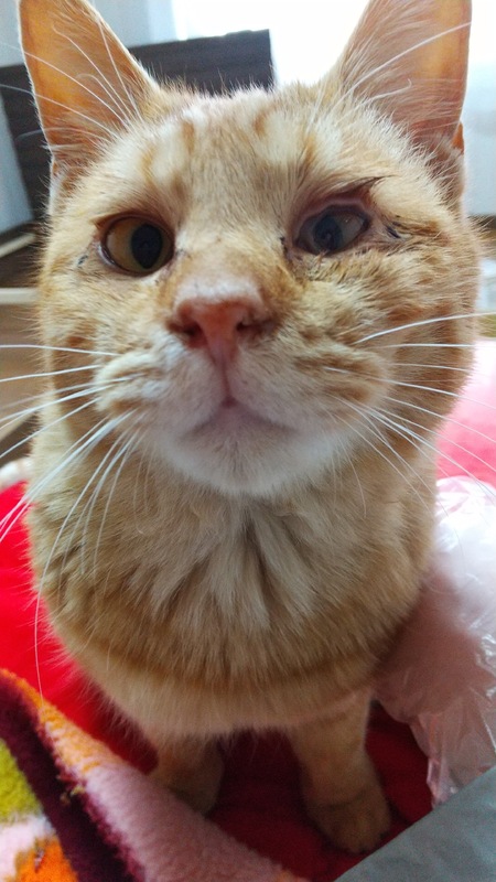 | 里親募集する理由 | 自宅の近所で鳴いているところを保護しました。 最初は左目は閉じた状態でひどい猫風邪をひいていたため、約一か月の通院・投薬をしました(治療終了) 左目には若干後遺症がありますが、獣医さん曰く視力など問題は無いという話です。 現在は、気温が下がるとくしゃみが出たり涙が多かったりしますが元気です。 自宅には先住猫がおり、性格的に同居は難しいため里親を募集します。 |
