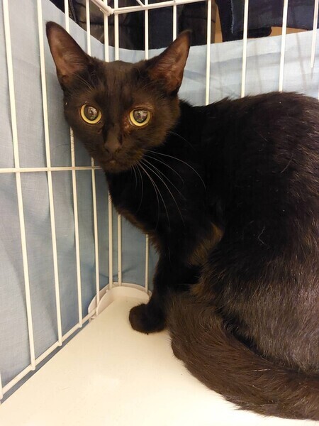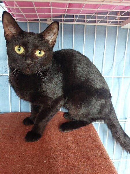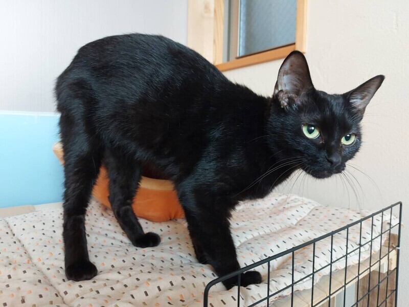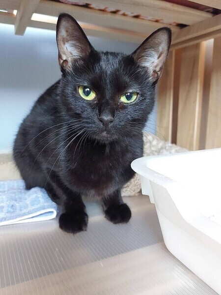 | 特徴(性格など) | ◆シオちゃん キリッとしたツンデレ美人の黒猫女子 ○静岡県浜松市内にて保護されました。 ○推定1歳半くらい(2022年4月中旬時点)の黒猫女子です。体重は2.64㎏(2022年4月10日時点)です。 ○尻尾は長くて真っ直ぐ。 ○キリッとしたツンデレ美人さんです。 ○慎重な性格なのか、最初は人に対して警戒しますが、撫でてあげるとすりすりしてきます。 ○遊ぶ時も慎重派で、あまりすぐにおもちゃに食い付かず、じっくり観察しています。 ○小柄でスリムなので、かくれんぼが得意です。部屋の中で見失うと、想定外の狭い場所に隠れていたりします。 ○細身ですがご飯はよく食べ、特にササミが好物です。 ○打ち解けるまでに少し時間がかかるかもしれませんが、撫でられるのが大好きな甘えん坊なので、ゆっくりシオちゃんと信頼関係を築いていただけるご家族希望です。 ★ワクチン1回済み、不妊手術済み。 ★猫エイズ、猫白血病ともに陰性。 ☆単身のかたはご相談ください。 ○YouTubeにも動画をあげています。こちらもご覧下さい。 「シオ」https://youtu.be/8XcAXHZRUho ○4/24 (日)開催の譲渡会に参加予定! 下の要項をお読みいただき、ぜひ会いに来てください♪ ☆★☆★☆★☆★☆★☆★☆★☆★☆★☆★☆ 4月24日(日)荏田にて譲渡会開催! ◎場所・・「島忠 荏田店」 神奈川県横浜市青葉区荏田西1ー3ー14 田園都市線「江田」駅より徒歩約7分 246号線江田駅交差点そば ◎日程・・4月24日(日)(雨天決行) ◎時間・・13時から16時 【15時30分受付終了】 (会場に利用可能な無料駐車場がございます。そちらをご利用くださいませ。) 今回はコロナ対策のため、制限を設けての開催となります。 *3密対策のため、当日12時30分より整理券を配布いたします。 *各回15分 *各回先着3組様 *参加の際は、マスクの着用、アルコール消毒のご協力をお願いいたします。 *当日は検温の上、体温が37度以上の方はご参加いただけません。 *混雑状況により、中止させていただく場合がございます。 ※参加予定の猫は体調により参加できない場合があります。ご了承ください。 ☆★☆★☆★☆★☆★☆★☆★☆★☆★☆★☆ |