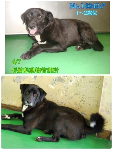 | 里親募集する理由 | 大きめの中型(体重21キロ)垂れ耳のラブmix風愛らしく穏やか優しい男の子ฅ•ﻌ•ฅ 歯も真っ白綺麗でまだ1〜2歳位と見受けられます。 兄妹なのか?よく似た3頭が一緒に収容され寂しく助けを待っています! 訳も分からず突然連れて来られてどんなに寂しく心細いか。一日も早く温かい家庭の中で過ごさせてあげたいです。 ⭐️県外、遠方の方でも譲渡の条件が合い、良縁に恵まれましたら里親になっていただけますのでどうぞ宜しくお願い致します! ※ 長くなりますが犬猫と里親様の幸せの為にも、募集内容を熟読し、必ずご家族とよく相談をされた上、ご家族全員の賛同を得られてからのお問い合わせ をお願い申し上げます。 ⭐️外飼いでは無く、室内飼育で家族の一員として迎えて下さる方、「引き渡し方法」のところにあります【アンケート】にご回答と共にお問い合わせをいただけますよう、お願い申し上げますm(_ _)m 長崎県大村市東大村にて以前から(数ヶ月前)3頭で彷徨っていたところを目撃されており、住民から通報がありました。 4/7にこの子がイノシシ罠の檻に入ってしまっていたところを保護、長崎県動物管理所へ収容となりました。(他2頭は心配そうに傍に居たそうです) いつから彷徨っていたのか( ; ; )寒さや空腹、雨風にも苦しんだことでしょう。その後は初めての知らない場所に収容されてずっと不安で寂しいと思います。。 推定になりますが歯が真っ白で綺麗、まだ若く1〜2歳位、体重は21キロ、手脚が太くがっちりしていますฅ•ﻌ•ฅ 可哀想にとても毛艶が悪く汚れています。 綺麗にブラッシングやシャンプーなどケアをしたらもっと美犬クンになる事でしょう(^^) 今までどう生きてきたのか…?知る由もありませんが人馴れしていて性格も花マルなので子犬の頃は可愛がられていたようです。 無理もありませんが収容当初は警戒して怖がっていました、今は尻尾を振って寄って来て、撫でて〜と鼻先を付けて甘えてきます♪大人しく目やにを取ったり歯も見せてくれるし、手から上手におやつも食べて、ナデナデすると嬉しそうに頭を預けてきてお腹も見せてくれます♡ 殆ど吠えたりもせず3頭の中で1番穏やか、お座りは出来ますとても可愛いです(^O^)/ 優しい職員さん方が怖くないよ、今度こそは幸せになれます様にと毎日触れ合いながら、一生懸命にお世話してくださっています。 運動量が必要な子達ですがずっと放し飼い状態でいましたしリードをしてのお散歩経験が無いようでリードに怖がって固まり動かず、首を振ったり後退りして逃げようとします。 その時の力、引きは強いです。 ※急な物音や知らない場所にビックリして怖がって、咄嗟に逃げよう、逃げようとする可能性も大いにあり得る事だと思いますし、その時の力、引きの強さも想定し、突然の走り出しや高い塀や壁・柵の飛び越え・急な方向転換や首を振って後退りからの首輪抜け、胴輪抜けにはご用心です! まだ呼び戻しも覚えていないので、もし逃がしてしまったらピューっと走って行ってしまうタイプかもしれません!(>_<)もし逃がしたらもう捕まえられない!とお考えくださいm(_ _)m ※繰り返しになりますがどんな子であっても、慣れてきても、常に、脱走・逃走には充分な注意と最大限の配慮をお願いしております! まだ若いこの子のペースや体力をみながら、躾や朝晩のお散歩などの運動の時間をしっかり取ることの出来るご家庭を希望しております♡ 保護時は古びた赤い首輪をしていて迷子札や鑑札などは何もついていませんでした。 言葉を持たない大事な家族を守る為に首輪、胴輪には迷子札・鑑札を必ずつけて頂きたい、そして、寒い中そんな悲しい状況のままでいたより保護されて良かったと考え、この子達幸せを、温かい本当の本物の家族を見つけたいと願っております⭐︎⭐︎ 人間が焦らずにゆっくり見守りながら、愛情を持って接し、しっかりとお散歩にも連れ出して行けば、この子はきっと新しい家庭に馴染んでいけると、本当は思い切り甘えて遊んでほしいのだと思います。 辛かった過去がある事、普通に飼育されてきた環境で生きてきたのでは無いという点も踏まえ、人は怖くないんだよと、ずっと人を信じてくれる様に広い心でドンとこい^_^と仰って頂ける方、この子をこの先尻尾フリフリ♪ニコニコの笑顔にしてくださる方、いらっしゃいませんか? どうぞ宜しくお願い申し上げますm(_ _)m ★右下の瞼に東洋眼虫が見られ4/13病院にて除去→抗生剤の注射をして点眼薬が処方され継続点眼中です。 https://wanchan.jp/disease/detail/8962 ⭐️必ず室内飼育で、譲渡後速やかに病院受診、健康診断、(血液検査、尿便検査、ノミダニ・フィラリア予防やシャンプー等)混合ワクチン接種、去勢手術、引き続きの目の治療する事が可能な、なるべくお留守番が少ない、沢山優しくスキンシップやコミュニケーションで触れ合っていただけるご家庭。 ⭐️狂犬病予防接種、フィラリア予防や混合ワク