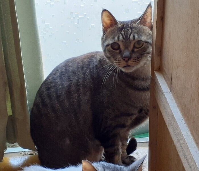| 特徴(性格など) | ちょっと大きめのキジトラの女の子。おとな猫らしい艶々の毛並み、立派な体格なのに、子供っぽい可愛いお顔をしています。右と左の眼の色が違います。目ヤニなどは出ていません。飼い主は多頭飼育で愛情を注ぐ余裕がなかったようで、ユウキちゃんは、怖がりですが、毎日お世話に通うボランティアさんには、背中を撫でられても威嚇する様子はありません。月日と共に少しずつ心を開き、可愛くなっていくユウキちゃんの様子を楽しんでくださるご家族を求めています。 ウイルス血液検査 FIV・FeLV共に陰性 ノミダニ回虫駆虫済 |