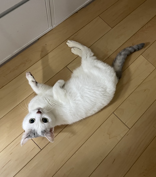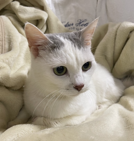 | 特徴(性格など) | 白×グレーで柔らかな毛質です。 10歳頃まで首輪をしていたのですが、外してもその部分だけ毛が生えてこなくなりました。 性格は穏やかで大人しく、ひとりでまったりしていることが多いです。 |