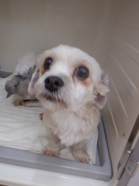 | 特徴(性格など) | シーズーmix シナモンちゃん 推定3歳 体重3月31日現在3.695kg シーズーより手足が短く、胴が少し長めのmix犬です。 食欲は旺盛であっという間に完食します。ご飯の準備をしているときは、大きな声で吠えます。 怖がりさんなので、人馴れはまだ出来ていませんが、レスキュー当時より少しだけ人に興味を持ち出しました。 ペットシーツも5割程の成功率なので、トイレトレーニングが必要です。 レスキュー時、毛玉と悪臭が酷かったため丸刈りにしましたが、今後は綺麗に伸びてきます。 健康状態は良好です。 不妊去勢手術済 5種混合ワクチン接種済み 検便:陰性 血液検査異常無し 歯石スケーリング済み マイクロチップ装着済み |