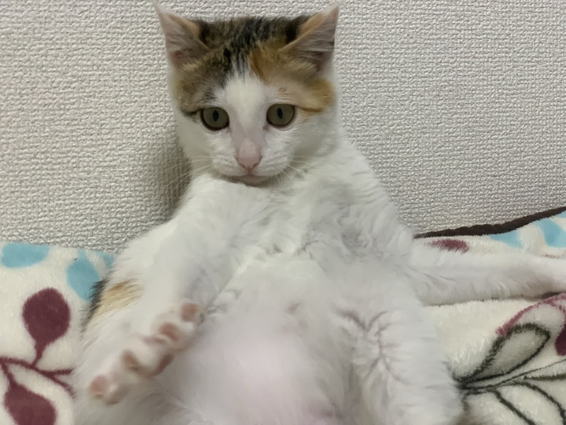 | 特徴(性格など) | ミケちゃんの白色の部分に 思わず顔をうずめたくなる毛並みです おもちゃで遊ぶのが好きで 堂々としてます。笑 まだ触ろうとするとかなりビビりますが そのくせして同じ空間に居ないと ダメみたいです、、可愛い。。。 この子は絶対相当な甘えん坊ちゃんになると思います。 |
