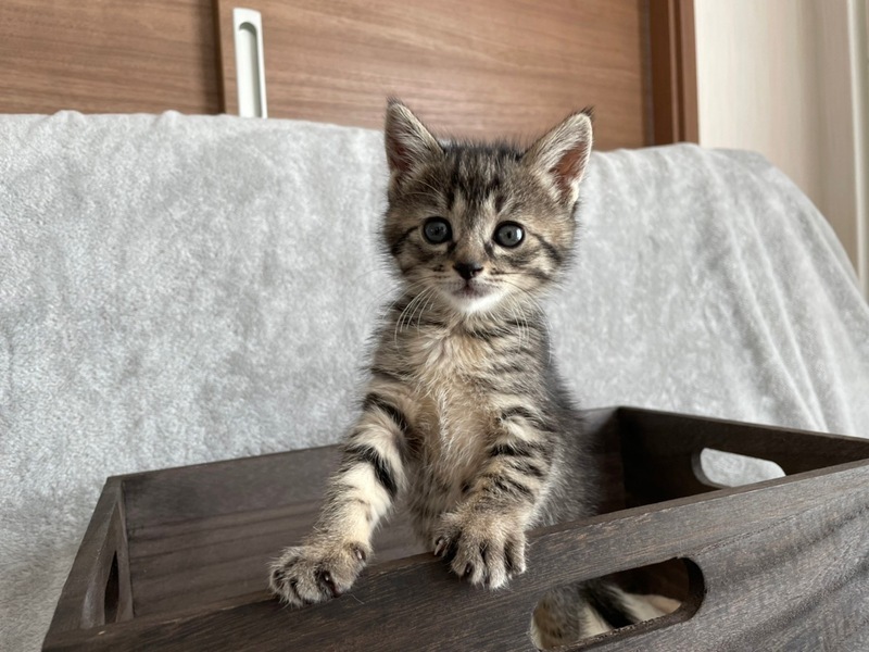 | 特徴(性格など) | 【仮名】小菊 【生年月日】2022年3月9日頃生まれ 【種類】MIX 【毛色】ブラウンタビー 【性別】メス 【避妊】未(適正時期に必ずお願いします) 【ワクチン】未 (近日中に接種予定) 【駆虫】未(近日中に実施予定) 【健康状態】食欲もあり元気です 【性格】生後3日頃に母猫が死亡してしまい、人工保育したため、人にはベタベタの甘えんぼうで、人の後を追ってきたりとても人懐っこいです。 |