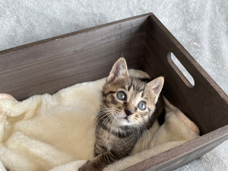 | 特徴(性格など) | 【仮名】春日 【生年月日】2022年3月9日頃生まれ 【種類】MIX 【毛色】ブラウンタビー 【性別】オス 【去勢】未(適正時期に必ずお願いします) 【ワクチン】未 (近日中に接種予定) 【駆虫】未(近日中に実施予定) 【健康状態】食欲もあり元気です 【性格】生後3日頃に母猫が死亡してしまい、人工保育したため、人にはベタベタの甘えんぼうで、人の後を追ってきたりとても人懐っこいです。 |