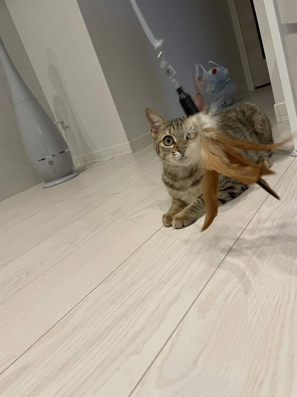 | 特徴(性格など) | キジトラ 活発で猫じゃらしが大好きです。 とにかく元気! |