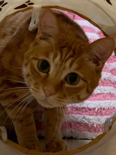 | 特徴(性格など) | 仮名を『シュート』と言います。 茶とらの男の仔。尻尾はすらっと長めです。 センター収容猫です。 保護当初皮膚炎がみられましたため、食事ケアなどを行ってきましたが、現在は皆と一緒のフードを食べていても問題なさそうです。 最初だけ人見知りがありますが、安心がわかれば直ぐに甘えん坊に。 フレンドリーな性格で、同室の仔たちとも仲良く過ごせています。 シュートと一緒にやってきた他の6頭の仔たちは、既に里親さんのもとで幸せに暮らしていたり、お届け予定があって出発待ちだったりします。 シュートにはどんな未来が待っているのかと思うと、気が引き締まる思いです。 幸せになろうね。 シュートがいつもらしく居られるように、またたび家でのお見合い大歓迎です! 愛らしいシュートに会いに来てくださいね。 【医療処置情報】これから実施のも含まれます *健康チェック *3種混合ワクチン接種 (年1回定期的にしております。詳細はお見合い時にお知らせいたします) *ウイルス検査実施(FIV.FeLV共に陰性) *検便実施 *駆虫薬投与(レボリューション、ドロンタール) *マイクロチップ装着 *不妊・去勢手術 |