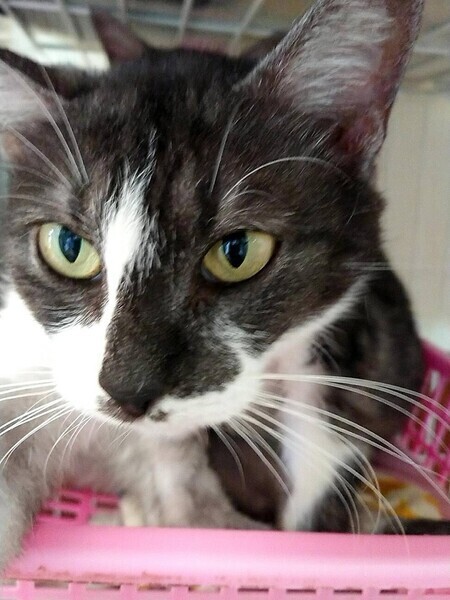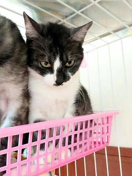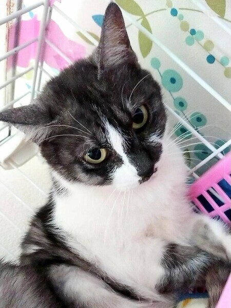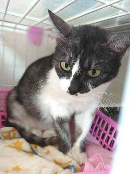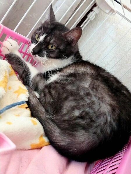 | 特徴(性格など) | ◆オシャ子ちゃん 人馴れ訓練中の黒スモークハチワレ女子 ○沖縄県内にて保護されました。 ○推定5歳以上(2022年4月時点)の黒スモークハチワレの女の子です。 ○尻尾は細くて真っ直ぐです。 ○同じく里親募集中の「スモ子」のお母さんです。 ○警戒心強めのびびりさんだけど、触らせてくれます。攻撃性はありません。急に知らない場所での生活になって困惑しているのかと思いますが、いつもケージ内の定位置でじっとしています。 ○元々は落ち着いた穏やかな子なのかなという印象です。 ○ゆっくり距離を縮めてくれるご家族を募集です。 ★ワクチン2回済み、不妊手術済み。 ★猫エイズ、猫白血病ともに陰性。 ☆単身のかたはご相談ください。 ○4/29(祝)パナソニック譲渡会参加予定! ☆★☆★☆★☆★☆★☆★☆★☆★☆★☆★☆★☆★☆★☆★☆★☆★☆ 4月29日(祝)有明にて開催のパナソニック保護犬猫譲渡会に参加予定! ◎場所・・「パナソニックセンター東京 スタジオA」 東京都江東区 有明3丁目5番1号 アクセス: ・りんかい線「国際展示場駅」徒歩2分 ・新交通ゆりかもめ「有明駅」徒歩3分 ※会場には駐車場はありません。公共交通機関でお越しください。 ◎日程・・4月29日(祝)(雨天決行) ◎時間・・10時~17時(最終入場:16時30分) 時間帯で保護犬、猫の入れ替えがあります。おーあみ避難所は29日10時からの部に参加します。 ●ペットの入場はご遠慮いただいております。 ●譲渡には各動物保護団体の審査があり、正式譲渡時には費用が発生します。 ●当日、保護犬や保護猫をご自宅に連れて帰ることはできません。 ●会場が混み合った場合には整理券での対応を予定しております。 ご来場いただいてもお待ちいただく場合がございますのでご了承ください。 ☆★☆★☆★☆★☆★☆★☆★☆★☆★☆★☆★☆★☆★☆★☆★☆★☆ |