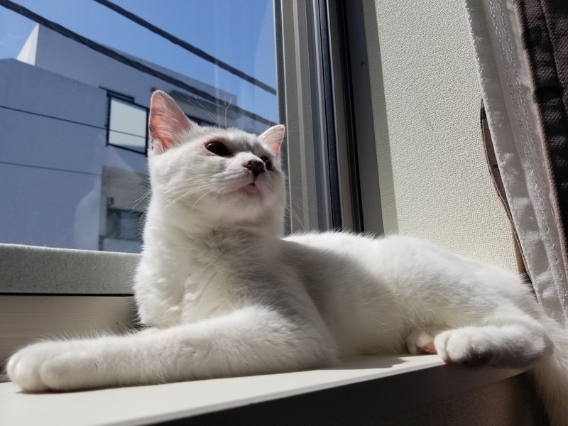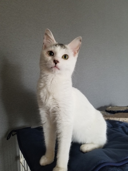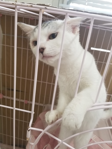 | 特徴(性格など) | 頭部の一部以外真っ白で、毛並みもとても綺麗です。 人慣れ抜群、性格も? 他の猫問題無し。 現在右目の周りが少し赤く、抗生剤が出されてます。 今のところ健康上問題無し、食欲旺盛です。 |