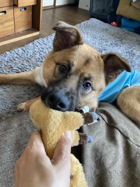 | 特徴(性格など) | 【愛称】チャタロー 【犬種】ミックス 【性別】オス(去勢済) 【年齢】1歳 【毛色】茶、白 【体重】21㎏(R4.4月現在) 【状態】ノミダニ駆除済、駆虫済、混合ワクチン・狂犬病予防注射済、フィラリア(-) 【人馴】すぐに馴れます 【預かり場所】千葉県市川市 【日記】mari_mali0718 (インスタグラム) https://www.instagram.com/mari_mali0718/ 【経緯】茨城県動物指導センターより引き取り 【性格・特徴】 大きな身体で一見コワモテですが、実は好奇心旺盛な遊び好きの甘えん坊です。 もともと人に飼われた経験はなかったようで、センター収容時は恐怖心から人に歯を 剥いたり唸って吠えてしまったりしていました。 引き出し後当日と翌日はそのような行動も見られましたが、人は怖くないということを すぐに理解し、それからはぐんぐん人馴れが進みあっという間にかわいい甘ったれ坊主に 大進化を遂げました。 センター引き出しから1週間経たずしてへそ天で控えめに甘えてくれるようになったり、 子どもたちとおもちゃで楽しそうに遊んだり、立派な家庭犬街道まっしぐらです。 今はまだ控えめに甘えていますが、これからもどんどん家庭犬として成長してくれると期待しています。 お散歩経験もなかったようで当初は嫌がる様子もありましたが、現在は楽しそうに歩いています。 他犬にはフレンドリーで今のところケンカを売られても買うようなことはありません。 大型犬のような落ち着きもあり、室内ではゆったりまったりしていることが多いです。 まだ1歳になったばかりぐらいの年齢で内面はまだまだ子犬っぽさが残っており、床に 落ちているものをカミカミしたりとイタズラっ子の一面もあります。 聞き分けは大変よく従順で扱いやすい子ですが、今後もしっかりリーダーシップをとりつつ 信頼関係をきっちり築いていくことは必須です。 おトイレは朝夕2回のお散歩時に済ませています。 室内での失敗は今のところありません。 体格はもうひと回り大きくなる可能性があります。 ご応募いただくにあたっては、まだ若く身体の大きなチャタローを今後15年以上先も きちんとお世話ができるかご一考下さい。 日々の様子はインスタグラムに随時記していますので是非ご覧下さい。 引き続き完全室内飼育でフィラリア予防や定期的なワクチン接種などの健康管理、脱走・ 逸走防止のための努力と近況のお知らせ、以上を必ずお約束していただける関東圏内のご家庭で、 終生家族の一員として愛情を注ぎ大切にしてくださる方からのお問い合わせを心よりお待ちしています。 ↓よくお読み下さい↓ 【お申し込み】 特徴、譲渡条件や いぬ助けのホームページより譲渡までの流れをよくお読み頂き 直接 いぬ助けのHPの「チャタロー」のページよりお申し込みください。 ↓ → https://www.inudasuke.com → いぬの里親さん募集 → 「チャタロー」のページより 内容をご確認の上、アンケートを送って下さい。 (こちらのサイトのアンケートではお時間を頂く場合がございます。 直接いぬ助けのHPよりお願いします。) 【いぬ助けSNS】 フェイスブック→ https://www.facebook.com/inudasuke/ インスタグラム→ https://www.instagram.com/inudasuke/ |