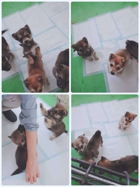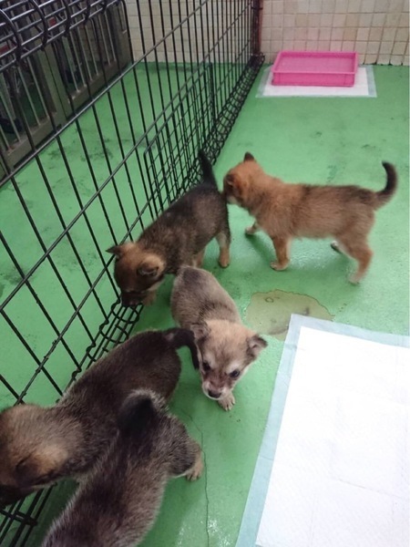| 特徴(性格など) | まだよちよち歩きの生後1か月位、とっても可愛い雑種の子犬(男の子3匹と女の子2匹)兄妹ですฅ•ﻌ•ฅ 〜4/25追記〜 女の子2匹は里親様が決まりました! 優しい職員さん方が大丈夫だよ、幸せになれます様にと毎日触れ合い、声掛けしながら一生懸命にお世話してくださっています。 最初は怯えている子もいましたがだいぶ人馴れしてきて撫で撫でも抱っこも大丈夫、今は尻尾フリフリ寄ってきてくれるようになってきました(^^)子犬らしい愛嬌たっぷりです♪ ★今迄の環境や栄養状態、健康状態がいいとは言い切れません。 今後体調の急変もあり得ることを念頭に置き 譲渡後は早急な病院受診が可能なご家庭を希望しておりますm(_ _)m 現在は1日に2回、ご寄付で送って頂いた栄養価の高い良質な仔犬用のドライフード(ネイティブドッグフードパピー)をふやかしたものを食べています。 まだまだ幼い為、長時間のお留守番は出来ません。寂しくて夜鳴きする子もいます。 今後の健康な成長の為に良質なフードを与える事が可能な方、育てる自信と覚悟のある方、飼育経験のある方が望ましいです♡ 子犬は排泄も頻回でこれから甘噛み期もありますฅ•ﻌ•ฅ 大変ですが充分ご理解頂ける方m(_ _)m まだお散歩デビューは出来ませんが今後成長していく中で、急な物音や知らない場所にビックリして怖がって、咄嗟に逃げよう、逃げようとする可能性も大いにあり得る事だと思いますし、その時の力、引きの強さも想定し、急な走り出しや高い塀や壁・柵の飛び越え・急な方向転換や首を振って後退りからの首輪抜け、胴輪抜けにはご用心です! 呼び戻しを教えなければもし逃がしてしまったらピューっと走って行ってしまうタイプかもしれません!(>_<)もし逃がしたらもう捕まえられない!とお考えくださいm(_ _)m ※繰り返しになりますがどんな子であっても、慣れてきても常に、脱走・逃走には充分な注意と最大限の配慮をお願いしております m(_ _)m 適切に制御し、躾や朝晩のお散歩、運動の時間をしっかり取ることの出来る、沢山優しく触れ合って頂ける方、先ずはじっくりと時間を費やし触れ合い、信頼関係を作っていく事の出来るご家庭を希望しております。 ♡人間が焦らずにゆっくり見守りながら、愛情を持って接し今後しっかりとお散歩にも連れ出して行けば、この子達ならじきに新しい家庭に馴染んでいける、本当は優しい家族に囲まれて思い切り甘えて遊んでほしいのだと思います。 当分の間はかなり手がかかり大変かと思いますがまだ子犬ですし、広い心で、長期戦でもドンとこい^_^と仰って頂ける方、 愛くるしいこの子達を尻尾フリフリ♫ニコニコの笑顔にしてくださる方、いらっしゃいませんか? どうぞ宜しくお願い申し上げますm(_ _)m ⭐️必ず室内飼育で、譲渡後速やかに病院受診、健康診断、混合ワクチン、生後4〜6ヶ月頃を目処に去勢・避妊手術をする事が可能なご家庭。 ⭐️まだまだ幼い為長時間のお留守番は出来ません。なるべくお留守番の少ない、か4時間以内)沢山優しくスキンシップやコミュニケーションで触れ合っていただけるご家庭。 ストレスが溜まらぬよう成長後の運動量もしっかり確保出来るご家庭m(_ _)m ⭐️トイレの躾は1からとなります。まだ子犬なので躾は入りやすいと思われます。現在ペットシートでトイレの練習中(^^) 最初は何かと手がかかり大変ですが(トイレスペースやペットシート、新聞紙を用意など)覚悟と根気・理解で受け入れて下さる方m(_ _)m ⭐️出来れば中型〜大型犬の飼育経験があり自信のある方、愛情を持って犬をしっかり躾することが出来る方、朝晩のお散歩や運動にも充分時間をあてられる方、もし怖がってなかなかお散歩が出来ない時などには決して引きこもりにならぬよう、場合によりトレーニング教室などもきちんと視野に入れて考えてくださる方。 何卒宜しくお願い致しますm(_ _)m ⭐️成犬時にどの位の大きさになるか分かりません、大きくなっても、(今のところ吠えませんが)吠えても大丈夫なご家庭。 中型〜大きめの中型犬程度に成長すると思われますฅ•ﻌ•ฅ もしかしたらもっと大きくなる可能性もあります。 以上の点を踏まえ、この子達が置かれている状況、寂しさと不安でいっぱいであろう心をご理解の上、全て受け入れ寄り添っていただけるご家庭で可愛がって頂きたいと祈っております。 収容された全ての子達は身勝手な人間による被害者であり、何も悪くありません( ; ; ) 家族の一員として生涯大切にしてくださる優しいご家庭とのご縁が結ばれ、これからは幸せになれます様に♡ ☆⭐︎ 1日も早く温かな愛情を目一杯注がれながら、元気に幸せに生きてほしいです。人間より遙かに短い生涯です。 冷たく硬いコンクリートの上、寒くて狭い檻の中でひたすら優しい素敵な里親様を待ち続けています。 悲しい事にこの世の中、人間に飼われないと犬は生きていく事が出来ません。 捨てる飼い主、探さない飼い主、医療に