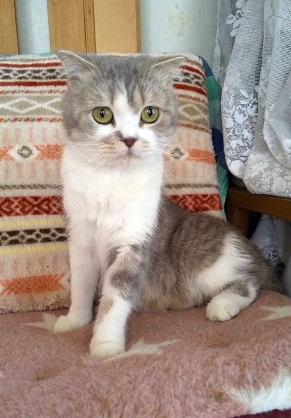 | 特徴(性格など) | スコティッシュフォールド 名前は、リリアンちゃん 体重 3kg ワクチン 接種済み レボリューション 済み エイズ・白血病 陰性 避妊手術 済み おっとりとして、とても人懐っこいです。 |