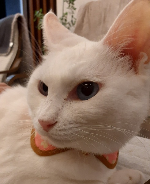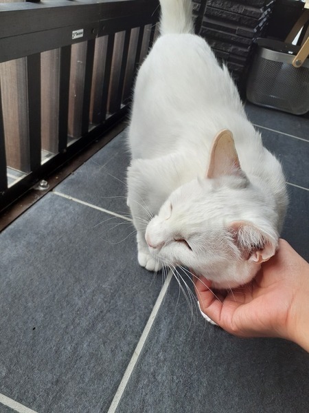| 特徴(性格など) | ◆性格や特徴 ☆推定4~5才の女の子 ☆目が青く真っ白な綺麗な子です。 ☆外を眺めるのが大好きです。 ☆1匹でのんびり甘えたいタイプです。 ☆神経質でじっとしていません。 ☆猫が苦手なようです。 ☆人間も静かな人が好きなようです。 ☆脱走を試みるので注意が必要です。 ☆イタズラしません。 |