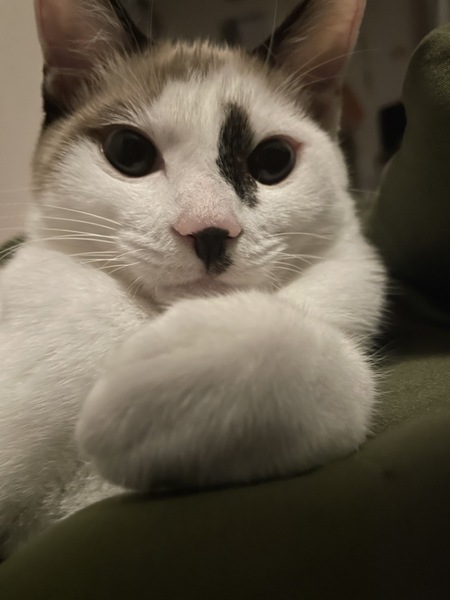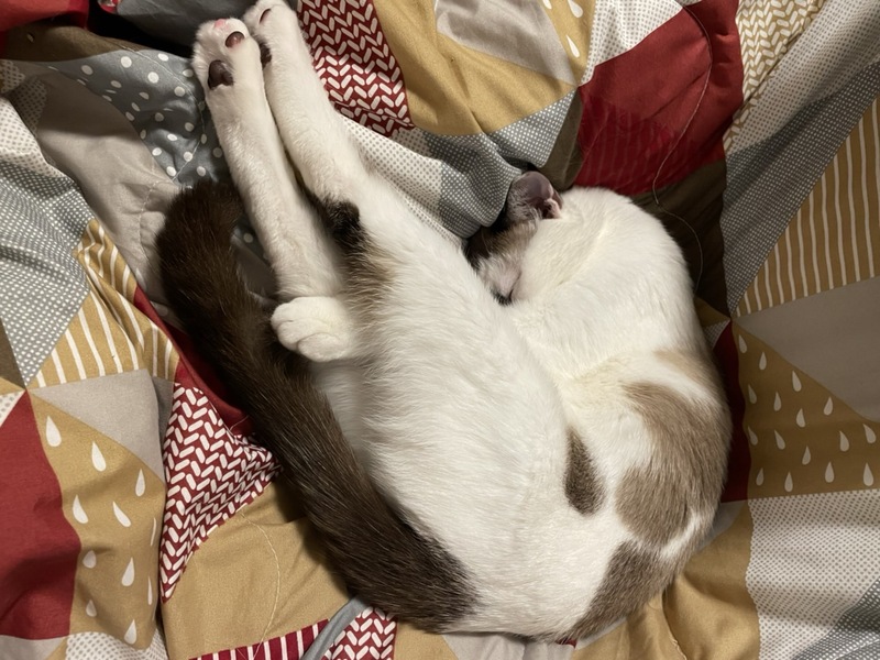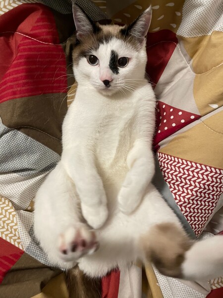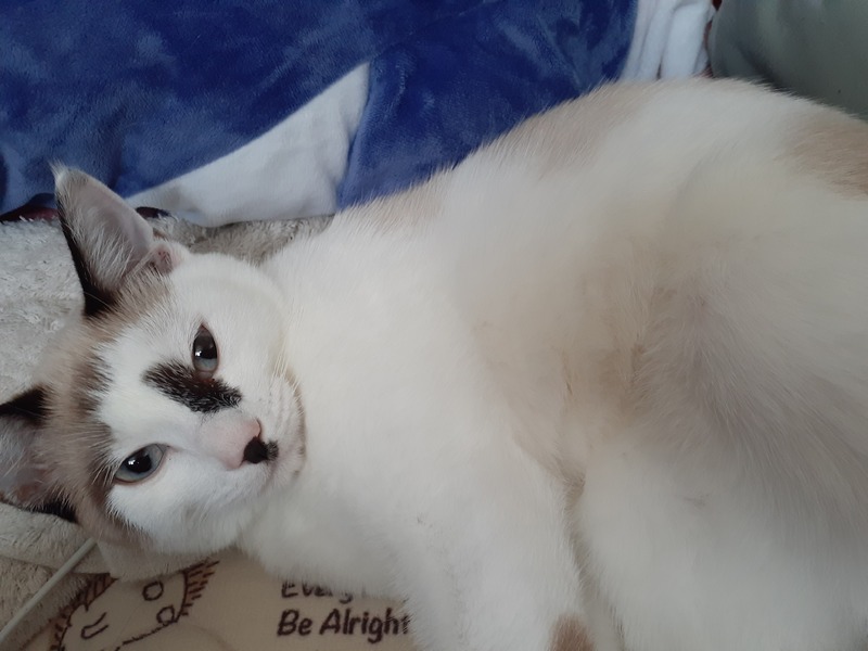 | 特徴(性格など) | 雑種ですがお顔、毛色はラグドール似ですが短毛の子です。好奇心旺盛でいたずら好きです。意外と甘えん坊で寝る時は近くで寝てることがほとんどです | ||