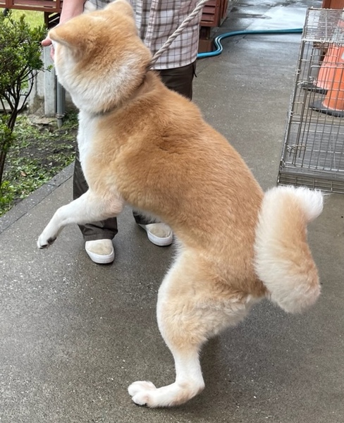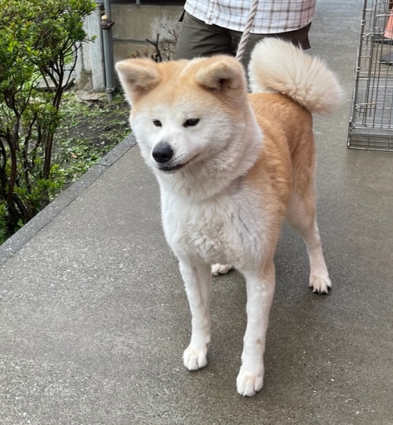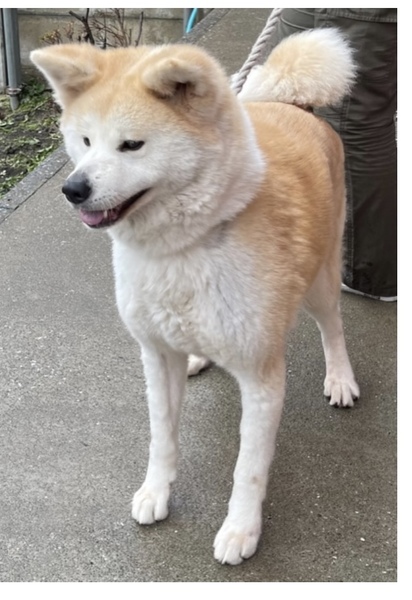 | 特徴(性格など) | 秋田犬の月ちゃん メス 4歳 22キロ 白と茶色 温厚従順賢いです |