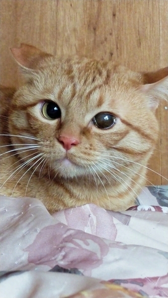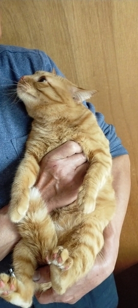 | 特徴(性格など) | 茶トラ君♂小柄でカワイイ顔をしていますが、知らない人にはフーフーシャーシャーと容赦なく威嚇しまくる臆病者です。シャー ฅ(`ꈊ´ฅ) しかし···飼い主さんとは毎晩、同じ布団で寝る、スリスリゴロゴロな甘えた君♡ 手懐けるのは大変難しいかもしれません、 猫が馴染むまで、ゆっくりと、我慢して向き合って頂ける方にオススメです。 (๑•̀ㅁ•́ฅ✨ 令和4年2月28日に去勢手術をしてサクラ耳になりました。 猫エイズ・猫白血病 = 陰性です。 親猫からの遺伝で左目が全体的に黒いです。光は感じております。 この先、この状態のままです。 (悪化することは ありません) 去勢手術以外に通院歴がありませんので 健康診断もしておりません。ワクチン接種もしておりません。マイクロチップも未装着です。 キャットフードは、何でも食べます。 コロコロとした健康的なウンチをします。 |