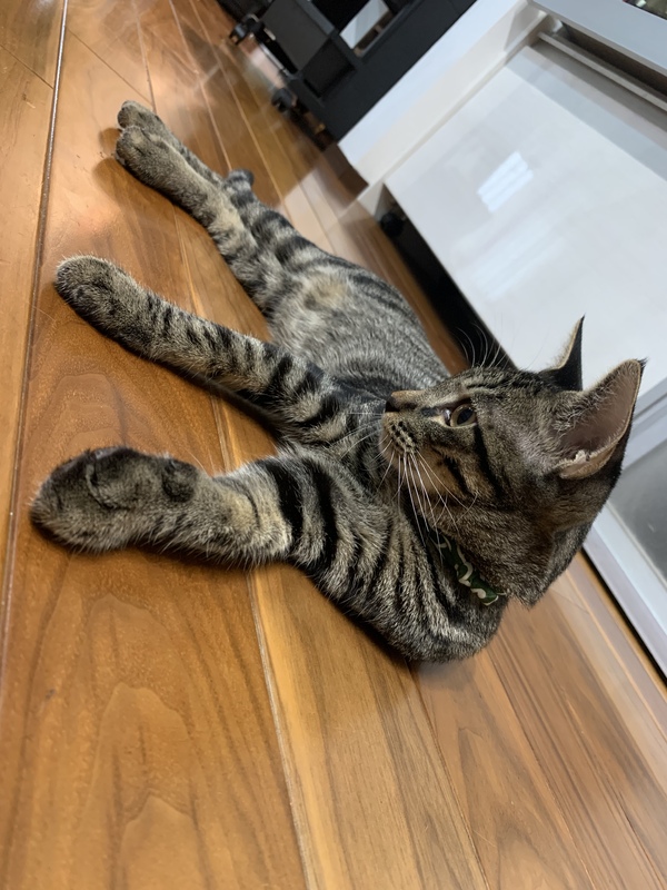 | 特徴(性格など) | 雄のキジトラです。 性格はツンデレの寂しがり屋の甘えっ子です。 身体は大きめですが結構ビビりです。 |