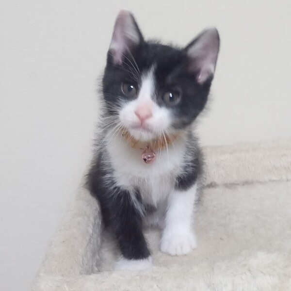 | 特徴(性格など) | 人間がミルクで育てたため、人間に対する恐怖心がなく人なれしています。きょうだいのぶちこちゃんと比べると、慎重なタイプ。 兄妹のぶちこちゃんと一緒のおうちだとうれしいです。 |