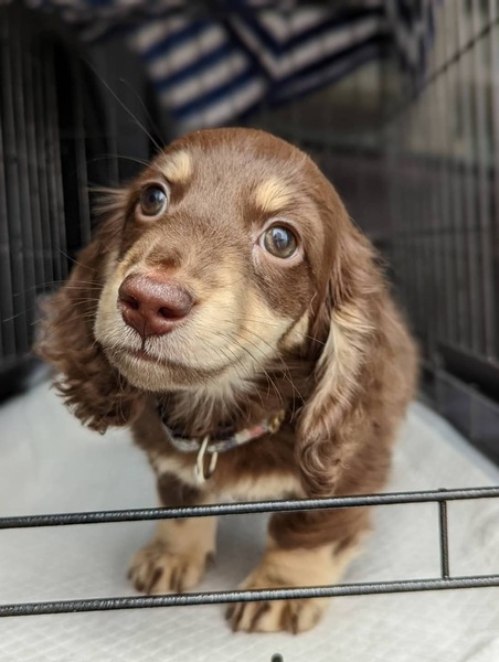 | 特徴(性格など) | 『2022D-035』Mダックス♂福 ◆預かりブログ◆ ※ご応募前に必ずお読みください。 https://ameblo.jp/cocosono2020/theme-10116497457.html ◆特徴◆ 【保護経緯】 繁殖屋放棄犬 【保護日】 2022.3.24 【仮名】 福 【性別】 ♂ 【犬種】 ミニチュアダックスフンド 【年齢】 推定3ヶ月 【毛色】 チョコタン 【体重】 1.6kg(2022/4/18現在) ◆性格・日常◆ 【性格】 食べることが大好きな、子犬らしく明るく活発です。 【トイレ】 トレーニング中 【お散歩】 未実施 【留守番】 ケージで出来ます 【就寝時】 ケージで出来ます 【お手入れ】 問題なくできます 【犬との関係】 社会勉強中です 【猫との関係】 猫に対しての反応はわかりません 【人との関係】 男女大人子ども問わず人が好きです 【その他】 ・ご自身でMダックスの飼育経験がある方 ・10ヶ月までに去勢手術実施をお約束いただける方(要証明書提出) ・幼齢のためお留守番の短い方 (子供のみ、高齢者のみとの留守番不可) ・主にお世話される方が55歳以下2名以上のご家庭 ・小学生以下のお子さんがいらっしゃるご家庭不可 ※幼齢のため当会指定の医療保険加入を必須とさせていただきます ◆今後行う予定の医療◆ 狂犬病ワクチン接種 去勢手術 ◆必要な継続医療◆ 大学病院での成長過程の経過観察 |