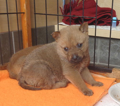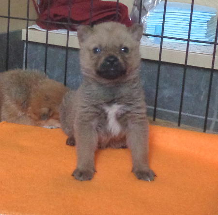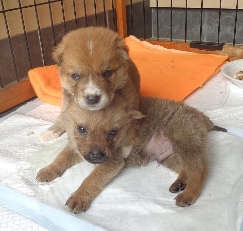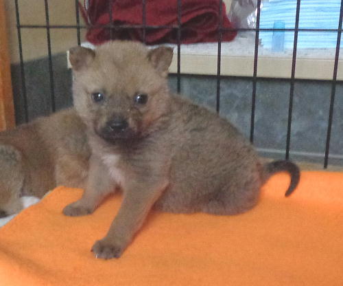 | 特徴(性格など) | 仮愛称:ポン太 性格:人の手により育てられましたので人なつこい甘えん坊くん、抱っこ大好きです。仲間の子犬たちと元気に遊び社会性を学習中です。 医療面:健診済み・駆虫済(4月17日)・フロントライン済み・今はまだワクチン未接種ですが、譲渡時には初回ワクチン接種済みで対応させて頂きます。 その他:健康状態は良好です。 |