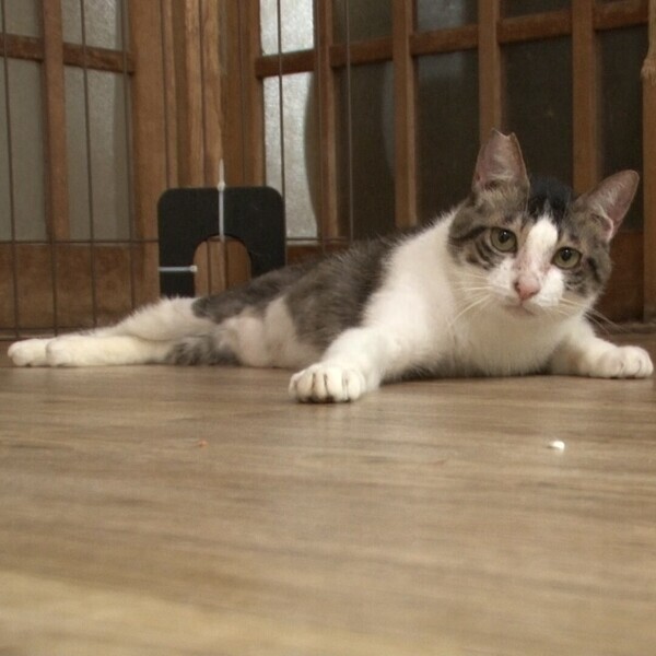 | 特徴(性格など) | ◆ヒョウくん 遊びと撫でられ大好きなキジ白男子 ○東京都内の多頭飼い崩壊現場から保護されました。 ○推定7〜8歳くらい(2022年4月時点)のキジ白ハチワレの男の子です。 ○尻尾は真っ直ぐです。 ○とにかく遊ぶのと撫でられるのが大好きです。ボールをひとりで部屋中追いかけまわしたりします。 ○撫でられると可愛い声で鳴くので、もっと撫でてあげたくなってしまいます。 ○初めてのおもちゃに1番に食いつく好奇心と、末っ子属性があります。 ★ワクチン済み、不妊手術済み。 ★猫エイズ、猫白血病ともに陰性。 ☆単身のかたはご相談ください。 ○4/29(祝)パナソニック譲渡会参加予定! ☆★☆★☆★☆★☆★☆★☆★☆★☆★☆★☆★☆★☆★☆★☆★☆★☆ 4月29日(祝)有明にて開催のパナソニック保護犬猫譲渡会に参加予定! ◎場所・・「パナソニックセンター東京 スタジオA」 東京都江東区 有明3丁目5番1号 アクセス: ・りんかい線「国際展示場駅」徒歩2分 ・新交通ゆりかもめ「有明駅」徒歩3分 ※会場には駐車場はありません。公共交通機関でお越しください。 ◎日程・・4月29日(祝)(雨天決行) ◎時間・・10時~17時(最終入場:16時30分) 時間帯で保護犬、猫の入れ替えがあります。おーあみ避難所は29日10時からの部に参加します。 ●ペットの入場はご遠慮いただいております。 ●譲渡には各動物保護団体の審査があり、正式譲渡時には費用が発生します。 ●当日、保護犬や保護猫をご自宅に連れて帰ることはできません。 ●会場が混み合った場合には整理券での対応を予定しております。 ご来場いただいてもお待ちいただく場合がございますのでご了承ください。 ☆★☆★☆★☆★☆★☆★☆★☆★☆★☆★☆★☆★☆★☆★☆★☆★☆ |