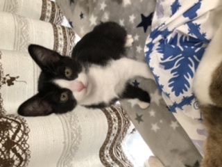 | その他(譲渡条件など) | まだまだ小さく遊び盛りでおもちゃ、動くもの全部に走り回り遊び回ります。甘えん坊で食いしん坊です。 カリカリも食べ、お留守番もできます。トイレ覚え済みです。 生涯可愛がってくれる方よろしくお願いします。 たまに成長の写真くれたらと思います。 白黒ハチワレ1匹です。 |