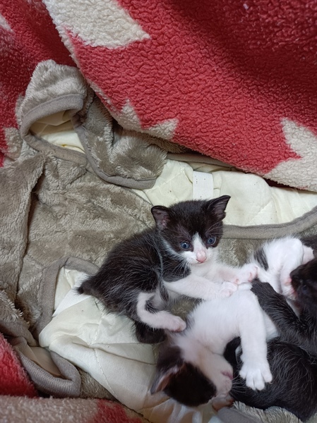 | 特徴(性格など) | 白黒ハチワレ=オス、メス1匹のようです。オスの子は背中の模様がブチになって、しっぽの先が曲がってます。メスの子はしっぽが短くてパンダみたいです。 黒猫=見た目はほぼ同じですが、しっぽの先が曲がってる子とピーンと伸びてる子です。オス2匹のようです。 |