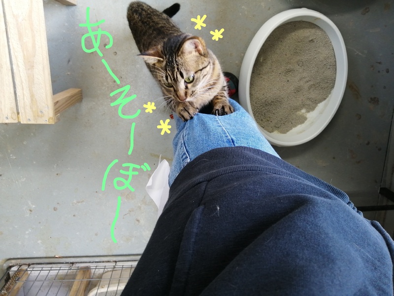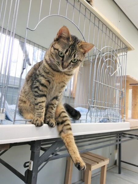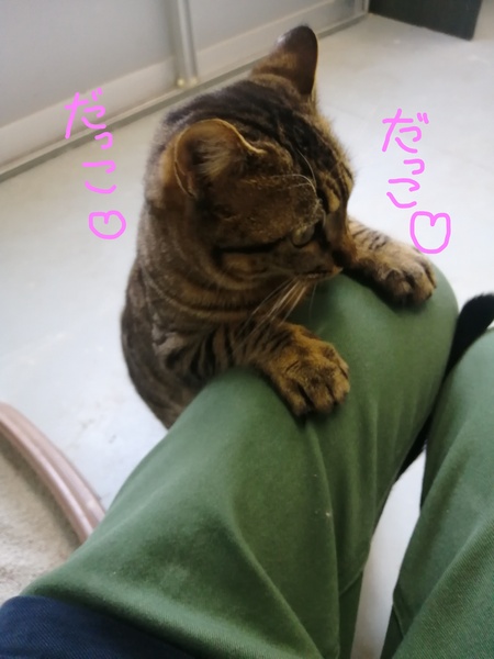 | 特徴(性格など) | 元気なキジトラの男の子です。 プレハブ小屋の中で、歳の近いねこたち10匹程と暮らしています。 甘えん坊でお膝の上も抱っこも好きです。 遊んでほしくて足元に来てズボンにしがみついてきます。 |