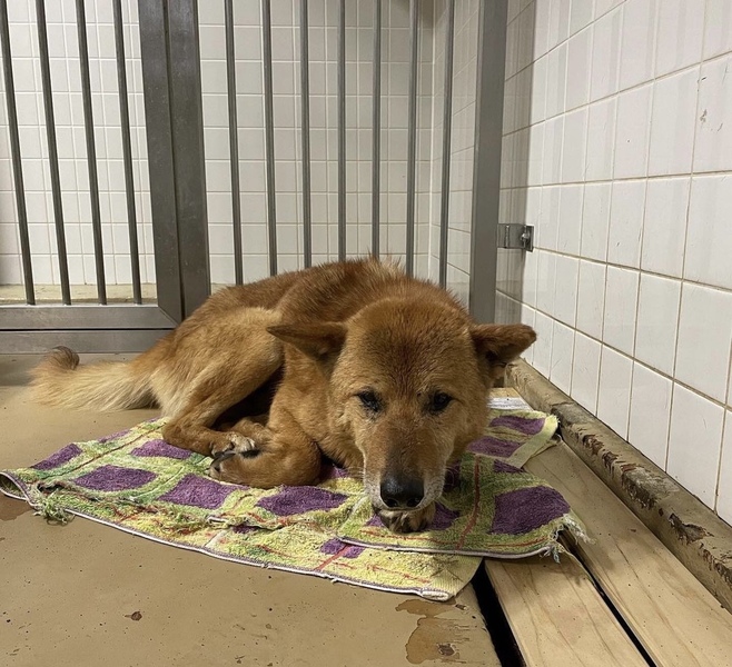 | 特徴(性格など) | 毛色…濃い茶色の男の子です 唸りも威嚇もありません 毛並みは悪くガリガリに痩せています若くは無いように見えます 体重18キロくらい(?) 過酷な生活が伺えます |