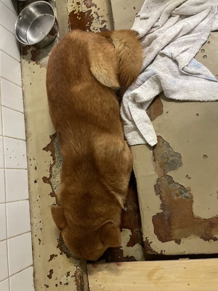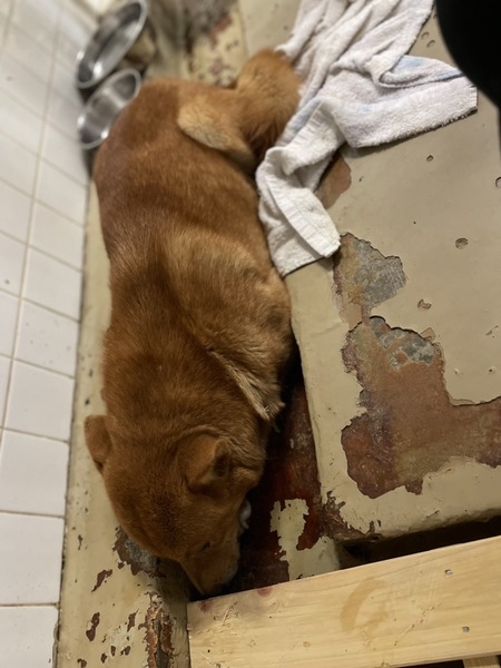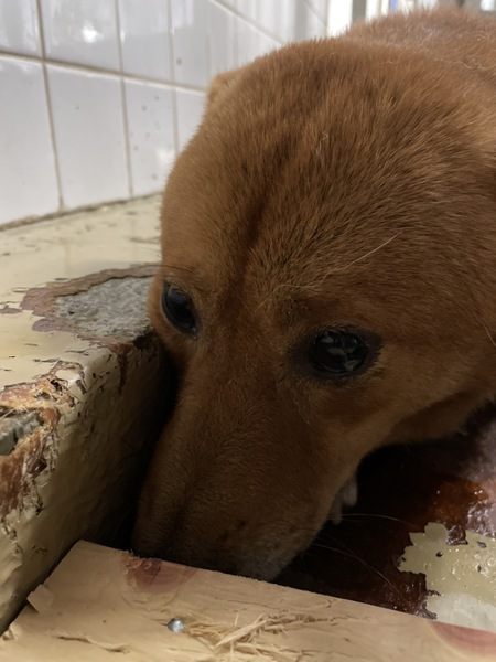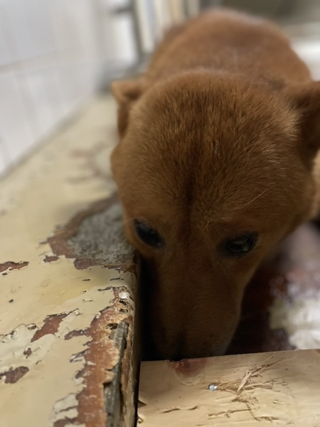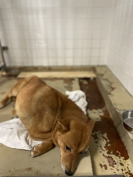 | 特徴(性格など) | 毛色…濃い茶色 唸りも威嚇もなくただただ怯えています 幼さが残る可愛い男の子です 体重は18キロくらい(?) 今の段階では年齢も病気もわかりせん |