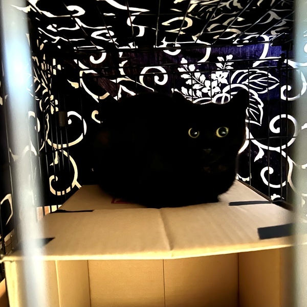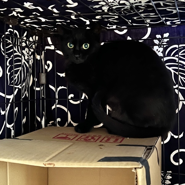 | 特徴(性格など) | 先日4/30に保護したばかりのメスの黒猫、尻尾長いです。 喉元のあたりが白いです。 生まれてからずっと野良なので全く人馴れはしていません。 現在ケージの中で飼っていますが緊張しているせいか暴れることもなくおとなしいです。 トイレ砂や餌の交換のために手を入れても噛み付くことはありません。 |