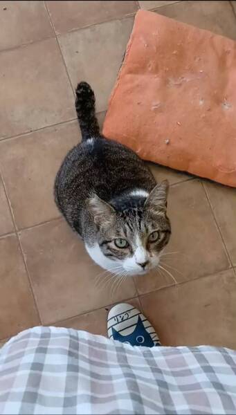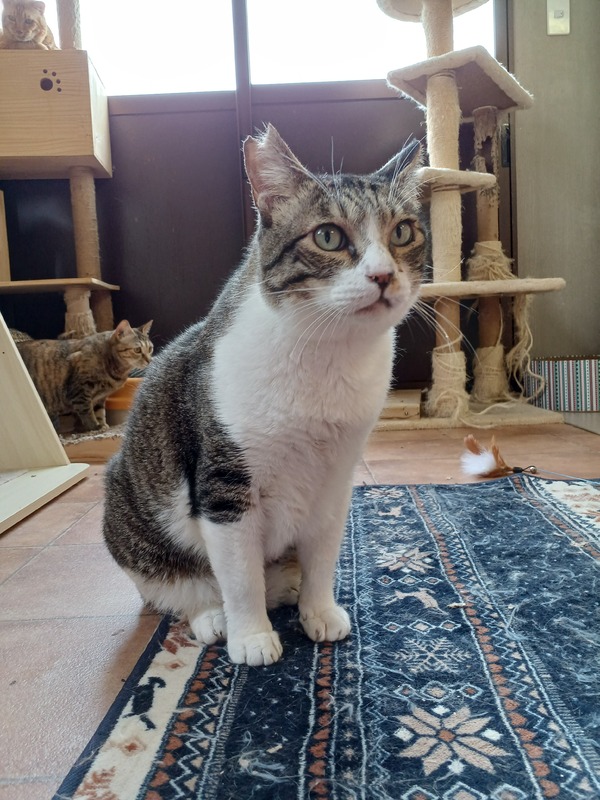 | 特徴(性格など) | サバトラ短毛、大柄な男の子です。 とても人が大好きで、両手を伸ばして甘えてきます。構ってもらえるまで、黙ってずっと後ろをついてきます。 |