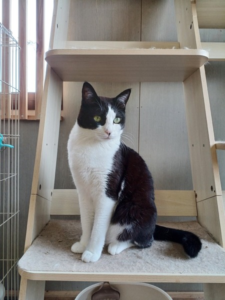 | 特徴(性格など) | 白黒のハチワレ猫、短毛です。 遊ぶのが大好きで、オモチャでコロコロ転がって遊ぶ姿はとても可愛らしいです。 |
