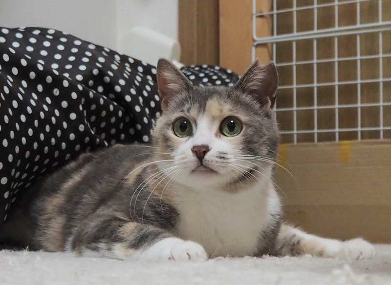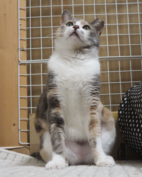 | 特徴(性格など) | ★特徴★ 【仮名】紅葉(くれは) 【年齢】推定2歳(2020年4月頃誕生、獣医師さん判断です) とっても小柄なパステル三毛ちゃんです。 尻尾はとても長くて真っ直ぐ。 瞳はグリーンがかったイエロー。 前脚から鼻先に向かってパステル三毛、尻尾に向かって普通の三毛ちゃん柄になっています。特にお顔回りは綺麗なグレーです! -------------- ★性格★ 保護した時から噛みつきや猫パンチなどの攻撃性は一切なく、とても穏やかで優しい性格の女の子です。 現在は名前を呼ぶとお返事してくれたり、撫でて欲しくて近寄ってきてくれます^^ その時は勿論、大音量のゴロゴロも奏でています♪ おもちゃで遊ぶのがとっても大好きで、元気いっぱいおもちゃを追いかけます☆ 特に新聞紙のカサカサ音に弱く、音を立てると目をキラキラさせて飛びついてきて、とっても可愛ですよ(*´▽`*) また、2年間お外で沢山の猫ちゃんと過ごしていたこともあり、他の猫ちゃんとも上手に生活できます。 自分から積極的に挨拶に行ったり、グルーミングしてあげたりと多頭飼育にも向いております♪ 保護してまだ3ヶ月未満ということもあり、大きな音や急な動作にはどうしても驚いてしまいますので、最初のうちは紅葉ちゃんのペースに合わせて温かく見守って下さると嬉しいです。 甘えたくてもまだ思いっきり甘えられない紅葉ちゃん。 里親様の愛情であと少しのその距離を埋めて欲しいと思っております。 そんな健気な紅葉ちゃんと笑顔があふれる猫ライフを満喫しませんか!? -------------- ★生活★ 〇お喋り 保護部屋でひとりぼっちなため寂しくて鳴いている事が多いのですが、里親様の姿が常に見える環境になれば、落ち着くかと思っております。 ただ、基本的にお喋りちゃんだと思います。 〇トイレ 保護当時は鉱物系のトイレを使用し、現在はシステムトイレを使用しております。 〇食事 我が家ではドライフード(ロイカナ インドアキャット)とウェットフード、おやつをあげております。 お外時代、ご飯が上手に取れていなかったようで、未だにがっついってご飯を食べます。 好き嫌いなく何でもよく食べますが、早くトラウマを無くす為にも、沢山美味しいご飯やおやつをあげて欲しいです♪ 紅葉ちゃんの日常を動画も交えながら日々綴っています。 ↓ ↓ ↓ ブログ「ノラあがり。」 http://ameblo.jp/noraagari テーマ「12.紅葉(くれは)」」をご覧下さい(*'ω'*) 是非ブログにお越しいただき、色々な紅葉ちゃんを知って欲しいと思っております。 どうぞ宜しくお願い致します<(_ _)>! |