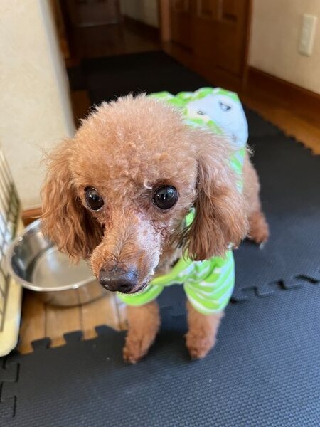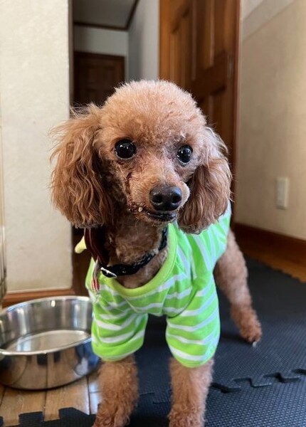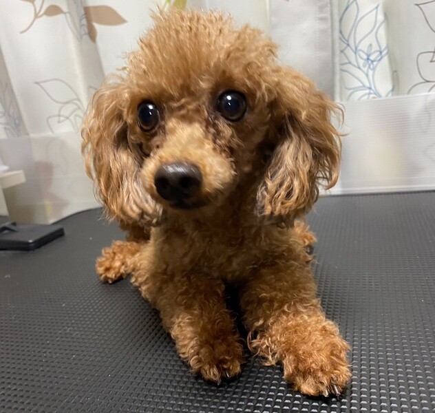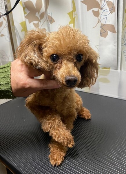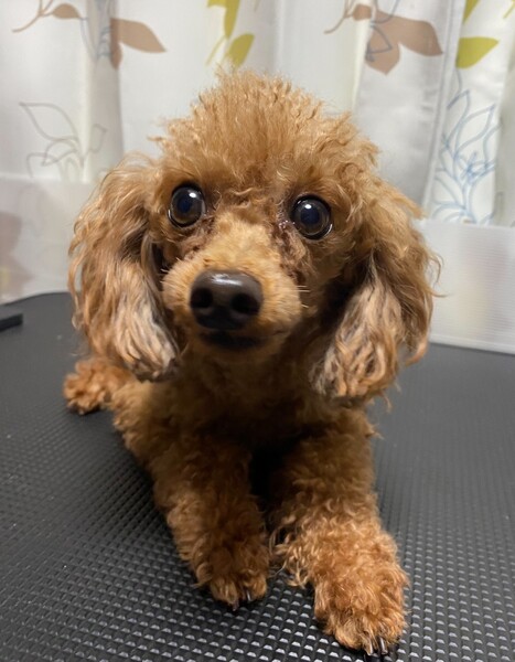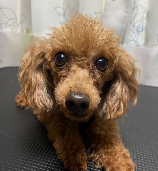 | 特徴(性格など) | トイプードルの女の子、ミミちゃんです。 被毛の色はレッドです。3キロです。 お目目が、くりっくりのかわいこちゃんです。 歯並び(右牙がでております)のせいか歯石がたまっていましたので、きれいにしました。 ごはんもポロリンとこぼれたりしますが、チャームポイントということでお願いいたします^^ 最初は怖がりますが、なれると甘えん坊らしいで、預かりママは手ぐすね引いて甘い毎日を待っております。 移動してすぐなので、これからこれからよ~♪のミミちゃんです。 |