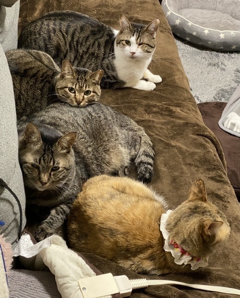 | 特徴(性格など) | 仮名:わらび 体重:4㎏弱 毛色:キジトラ ☆外見☆ アイドル級の可愛さです! 大きなお目目と、素でニコニコしたお口の、大変可愛らしいお顔が一番の特徴です。 綺麗な縞々で、ふわふわの毛並み。 長くて少し曲がったしっぽ。 頭が小さくて素晴らしい等身の持ち主! 小柄で、痩せすぎず太りすぎず、ちょうどいい体型をしています。 美しさと可愛さの両方を兼ね備えた稀有な存在です。 なかなか好きに撫でさせてくれる訳ではありませんが、見ているだけでも見た目や仕草が可愛くて、胸がキュンキュンしてきます。 「見ているだけでもこんなに可愛い子が、甘えてくれるようになったらどんなに…」と思われませんか? 真の猫好きの方であれば、この子の魅力を分かってくださると思っています^^♡ ☆性格など☆ 保護当初は生粋の野良猫!という感じで、威嚇も猫パンチも激しい子でした。 ですがその仕草が、怖くて必死に身を守ろうとしている、という様子なのが分かりました。 その時から比べると、だいぶん慣れてくれて、落ち着いている時は撫でさせてくれるようにもなりました。 ただ今も、こちらから近づいて行ったり、急に触ろうとすると、怖くてつい威嚇や猫パンチをしてしまいます。 ですが、怖いからつい反応してしまうだけで、ちゃんと手加減もしてくれており、無理をさせすぎなければこちらも傷を負う事はありませんでした。 ちなみに、この地域では今まで小さな仔猫たちも保護してきたのですが、その子達は早くに保護したおかげで、大の人間好きで稀に見る甘えん坊さん達ばかりでした。 わらびはその子達と同じ頃に生まれた子のはずですが、保護したのが1年遅かっただけで、こんなにも人間が怖くなってしまうのか…と、お外の生活の酷さを思いました。 お家の中の生活にはすっかり慣れており、ソファやハンモックで気持ちよさそうに転がっているのを見ると、慣れきった立派な家猫です。 あと、おやつは本当に大好きで、ちゅーるやクリスピーキスを持っている時は自分から近づいてきて手から食べてくれます。 嫌な事をされたのか分かりませんが、今でも顔の前に手がくると怯えて威嚇してしまう事があります。 でも、隙を見計らって声をかけながら、後ろからそーっと撫でると、気持ちよさそうに身をゆだねてくれます。 最近では、こちらが座ってじっとしていると、自分から近くにきてくれたりもします。 撫でるとゴロゴロと喉を鳴らしたり、撫でるのをやめると、その場でコロンコロン転がってアピールのようなものもしてくれるようになりました。 ここまでかなり時間をかけさせてしまいましたが、そういう仕草を見ていると、「この子は実は、他の子達と同じようにすごい甘えん坊さんなんじゃないかな」と分かります。 先住猫さんの性格にもよると思いますが、猫が嫌いな先住さんで無い限り、わらびの方は猫さんが大好きです。 うちには、年下の子が気に入らないタイプの子達がいて、その子達の事は苦手なのですが、 優しい子達の事は大好きで、特にお姉ちゃん猫に対しては隙あらばくっつき、ベタベタに甘えています。 お兄ちゃんやお姉ちゃんが近づいてくると、鳴き声まで変わります。 少なくとも猫に対しては相当な甘えん坊で、その様子がとっても可愛いです。 ですので、他の猫さんにも優しい先住さんのいるお家でしたら、自信をもっておススメできる子です。 まだまだ人馴れ途中ですが、その分、これからお互いに絆を深めて甘えてくれる時を楽しみにできるかと思います。 人馴れしていなかった猫さんで、本当のお家である里親さんの元で、我が家よりずっと早く懐いてくれるようになった子を何度も見てきました。 人馴れ途中ですら、少しずつ懐いてくれている様子が私もたまらなく愛おしいのです。 最初から人馴れ抜群な子は勿論可愛いですが、ご家族自らの愛情によって甘えん坊さんに返信してくれた時の喜びは何にも代えがたく、格別ですよ。 真の猫好きの方、アイドルわらびをどうぞよろしくお願いします! ツイッター http://twitter.com/chatmi9 ブログ http://chachandaisuki.blog.fc2.com/ 【健康状態】 極めて良好です。 猫風邪が蔓延している地域でしたが、わらびだけは猫風邪も持っておらず、体調不良になった事も一度もありません。 食欲旺盛で快便。 (我が家ではトイレの失敗は一度もなく、固まる砂タイプでもシステムトイレでも上手にできます。) ・ノミ取り・駆虫済み ・FIV、FeLVともに陰性 (2019年6月現在) ・3種混合ワクチン2回接種済み(2019年6月、8月) ・避妊手術済み(2019年5月) ・その他、現時点で必要な基本医療ケアは終えています。 (譲渡前にマイクロチップ装着予定) |